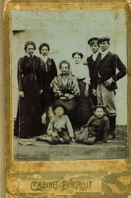 - children of Andreas Janz, GM #811044. Standing from left to right is: Elisabeth Janz, GM #860458; Helena Janz, GM #860457; Anna Dueck, GM #860481; Heinrich Andreas Janz, GM #860480; Gerhard Goerzen, GM #860464. Seated is Susanna Janz, GM #860460. The two boys in front are an unknown brother of Gerhard Goerzen's on the left and Kornelius Andreas Janz, GM #68846 on the right. Thank you very much, Jennifer Hicks