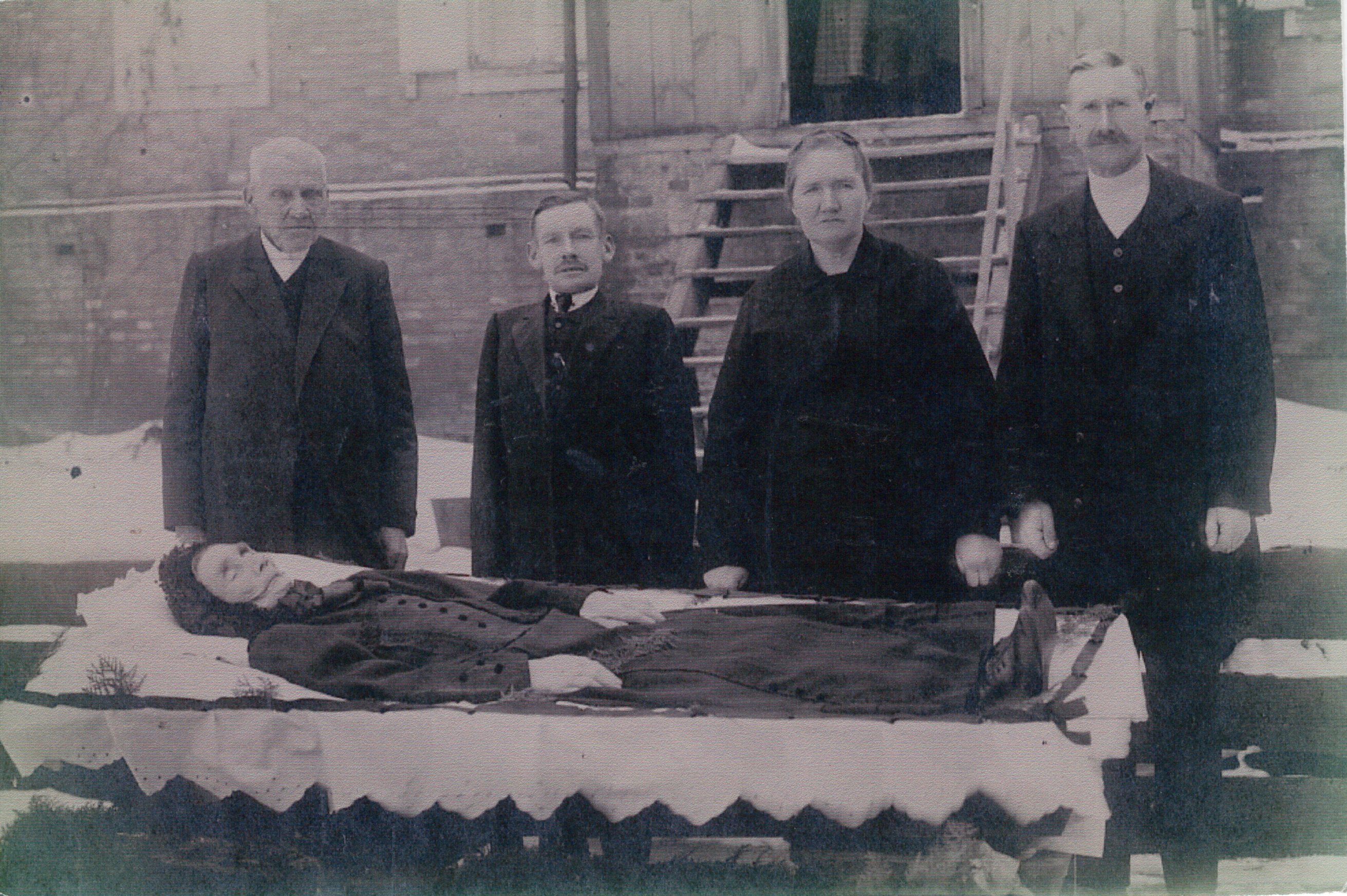 Erika from Canada: This photo belonged to my aunt Erika (Sara) Epp (1915-2018 GM#1019369). I believe she received this copy from her sister Justina in Germany. Just had written on the reverse of the photo that the women in the coffin was a sister to their Oma. The woman had died in Riga and was buried there on the family's way to Canada in 1895. The brother-in-law had written thanking for her condolences.