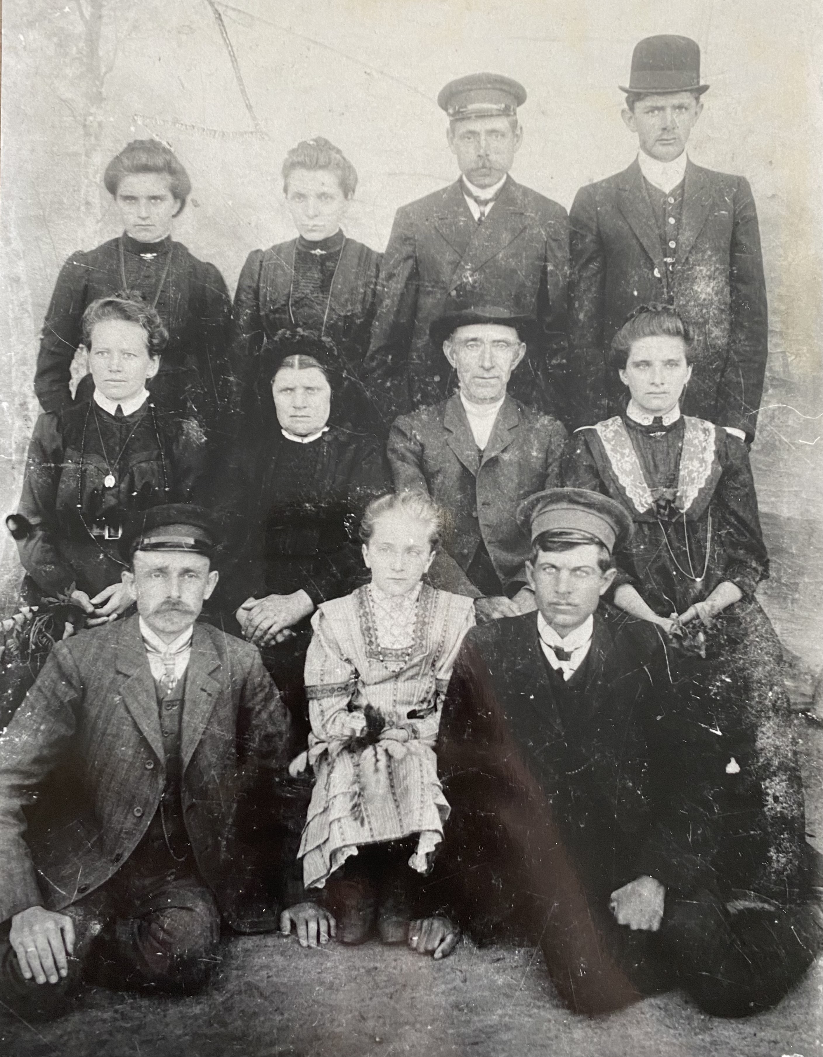 Von links nach rechtsHinten stehendMaria Fröse (*1895) wandert nach Kanada aus, später Neufeld (Lebenslauf)Katharina Fröse (*1883) später PetersEhemann von Katharina, Abram PetersJacob Fröse (*1891) wandert nach Kolumbien ausMitte sitzendEhefrau von Abram, Elisabeth Schmidt.(Mutter) Susanna Hamm(Vater) Jacob FröseSusanna Fröse (*1989) später PaulsVorne sitzendAbram Fröse (*1877)Anna Fröse (*1899)Ehemann von Susanna, Kornelius Pauls