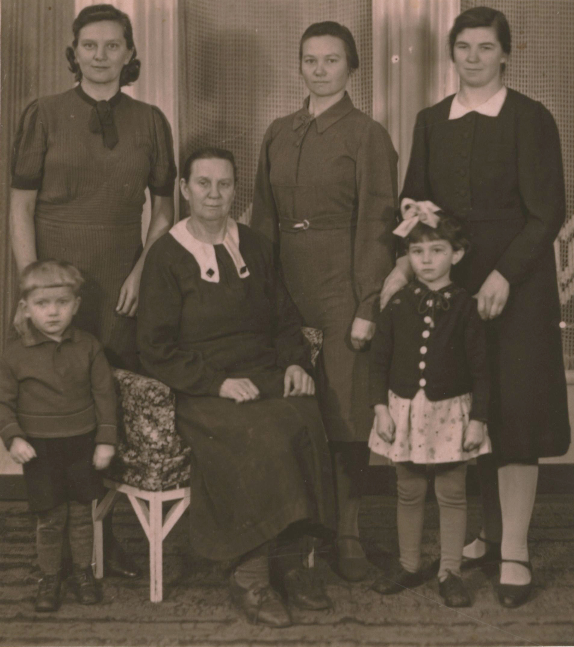 Margarete Braun mit Sohn Eduard, Mutter Susanna Peters, Maria, Susanna Pauls mit Tochter Eisa (vlnr)