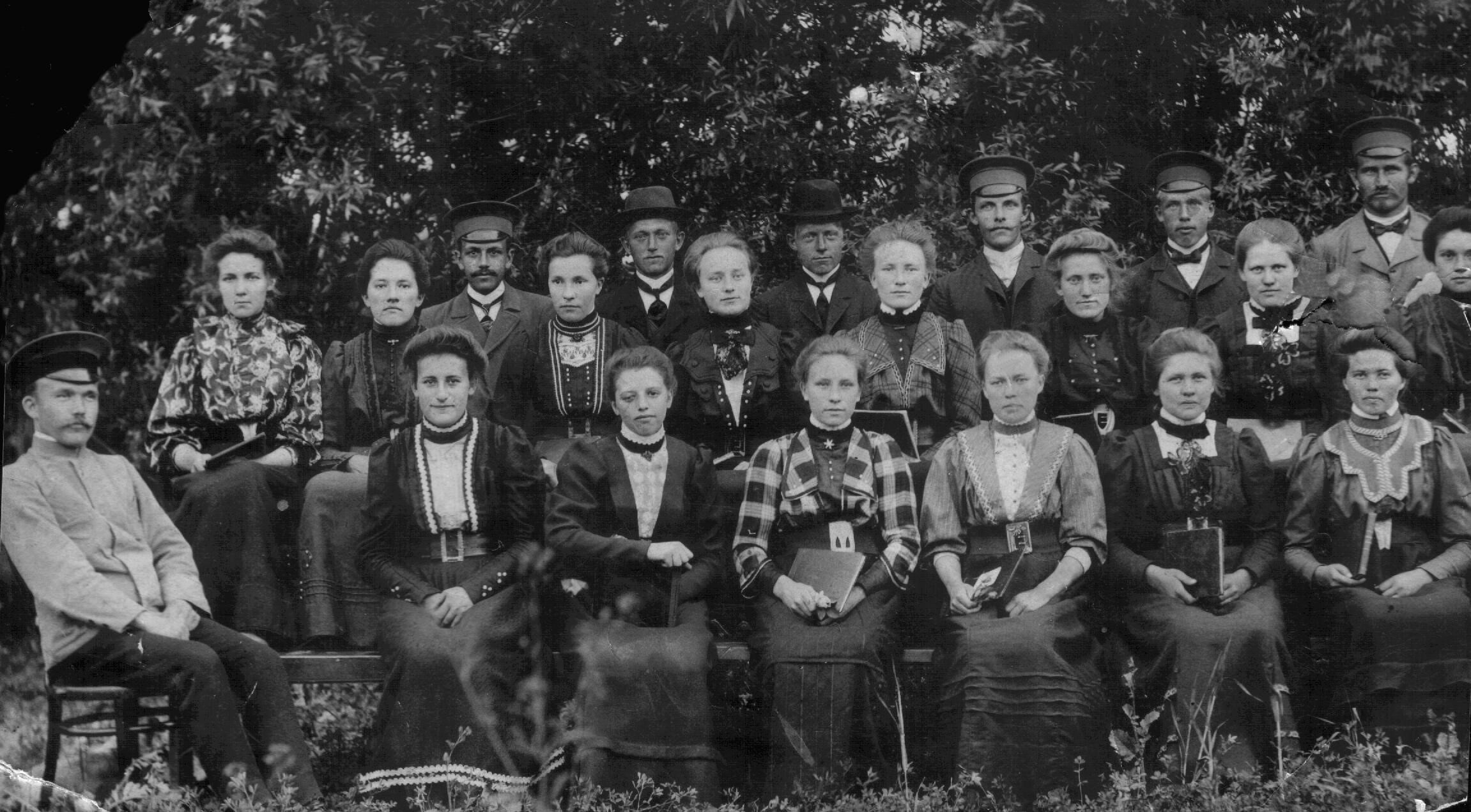- Der Chor der Gemeinde Gnadental-Nikolajpol (Foto 1910) – Chorleiter Abraham Wedel (vorne ganz links) – hinten v.l. – Abraham Jakob Kröcker, Isaak Johann Klassen, Franz Johann Klassen, Johann Reimer, Gerhard Reimer, großer Jakob Wall. Mittlere Reihe v.l. - unb.; Ehefrau von K. Reimer; Katharina (geb. David Reimer) Ehe Jakob Aron Dick); Helene (geb. Wedel) Reimer; Agathe (geb. Wiebe) Penner, Margarethe (geb. Reimer) Mantler; Anna Reimer; unb. Vorne v.l. – Anna (geb. Dick) Janz, unb., unb., Katharina (geb. Wedel) Dirks, Susanne Giesbrecht, unb.
