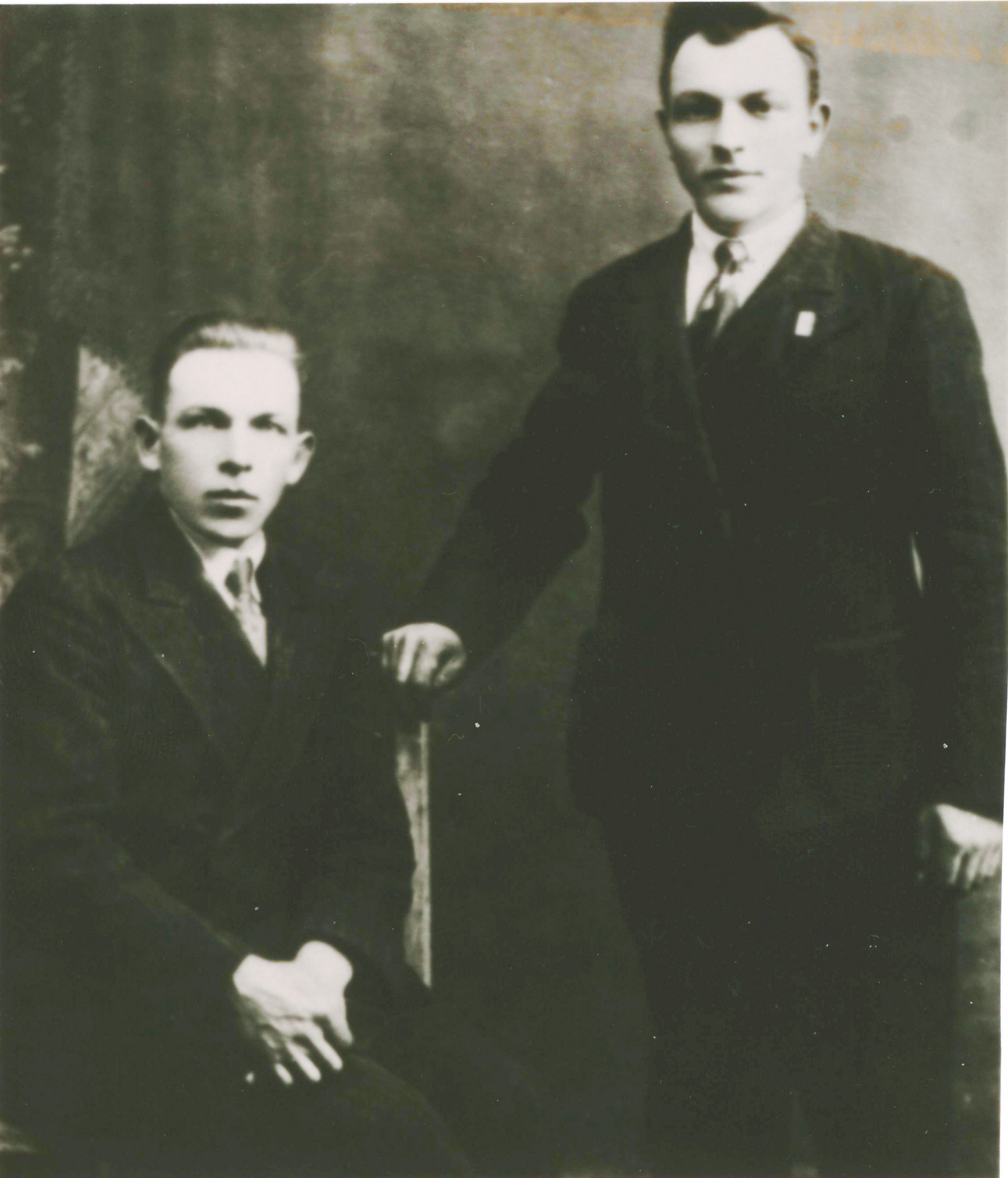 Gerhard Dyck (im Krieg gefallen) und Hans Dyck (stehend; lebte in Canada)