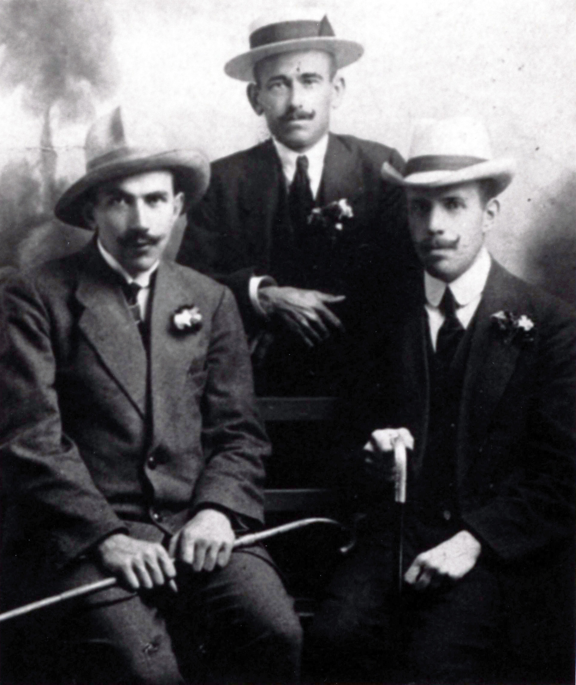 vlnr: unbekannt, Johann J. Peters (verh mit Katharina geb. Isaak), Abram Giesbrecht aus Schonwiese. Bild 10 Quelle: Familie Peters